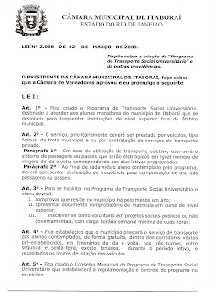 Página 1 - Lei 2.088/2009 - Transporte Social Universitário