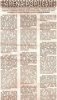 A matéria foi publicada no Jornal Itaboraí do dia 18/04/2009, na coluna Arena Popular.