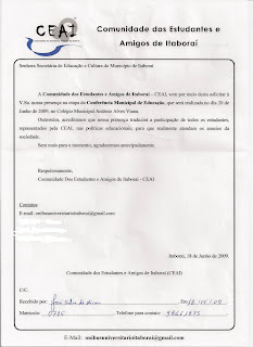 Segundo OFÍCIO (como o primeiro Ofício se perdeu na Prefeitura, nos foi pedido pela secretária dele que enviássemos um segundo Ofício).